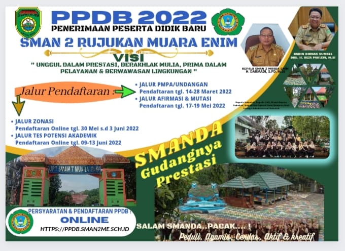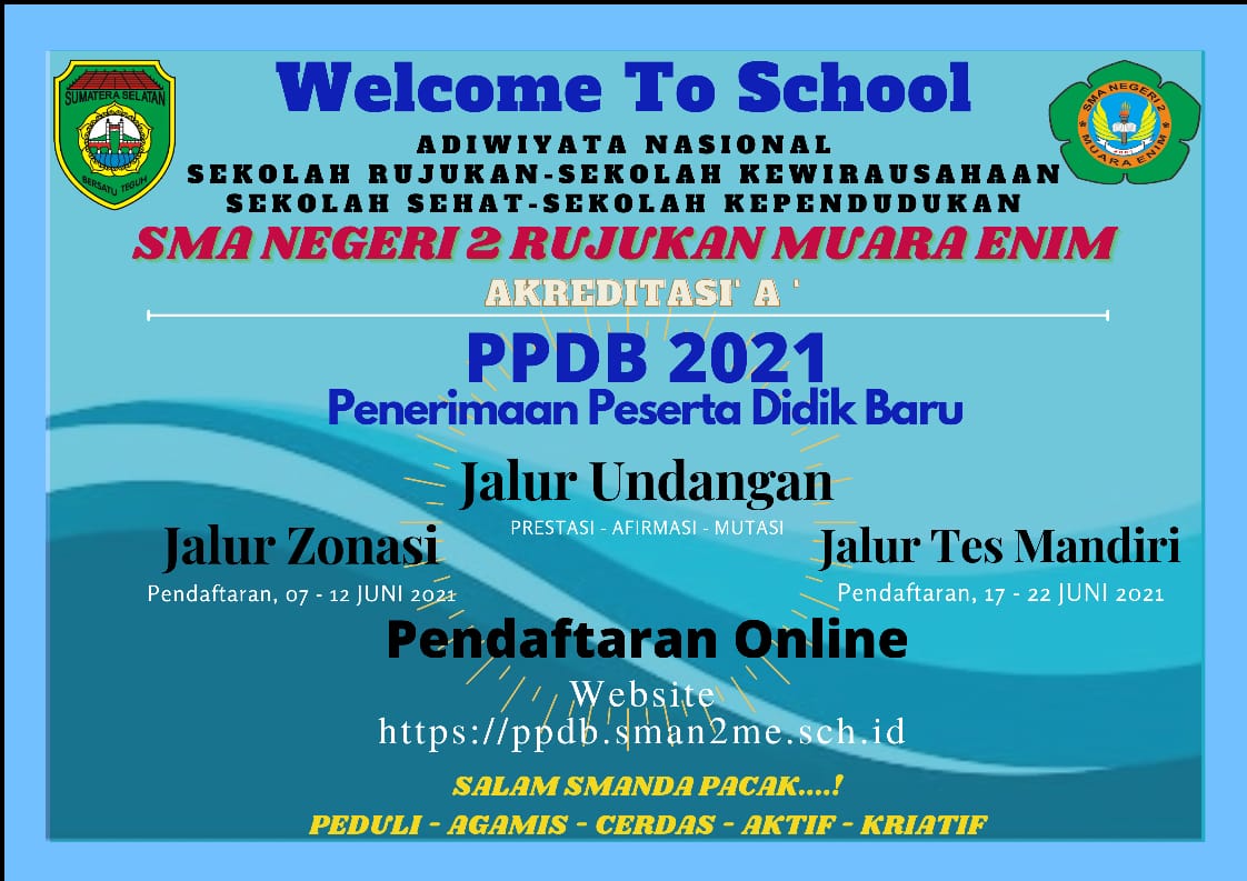 by Kehumasan - 2021-06-10 09:06:43Informasi Penerimaan Peserta Didik Baru (PPDB) SMAN 2 Rujukan Muara Enim Tahun Pelajaran 2021-2022